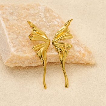 Gold Tone Stainless Steel Butterfly Drop Earrings for Women