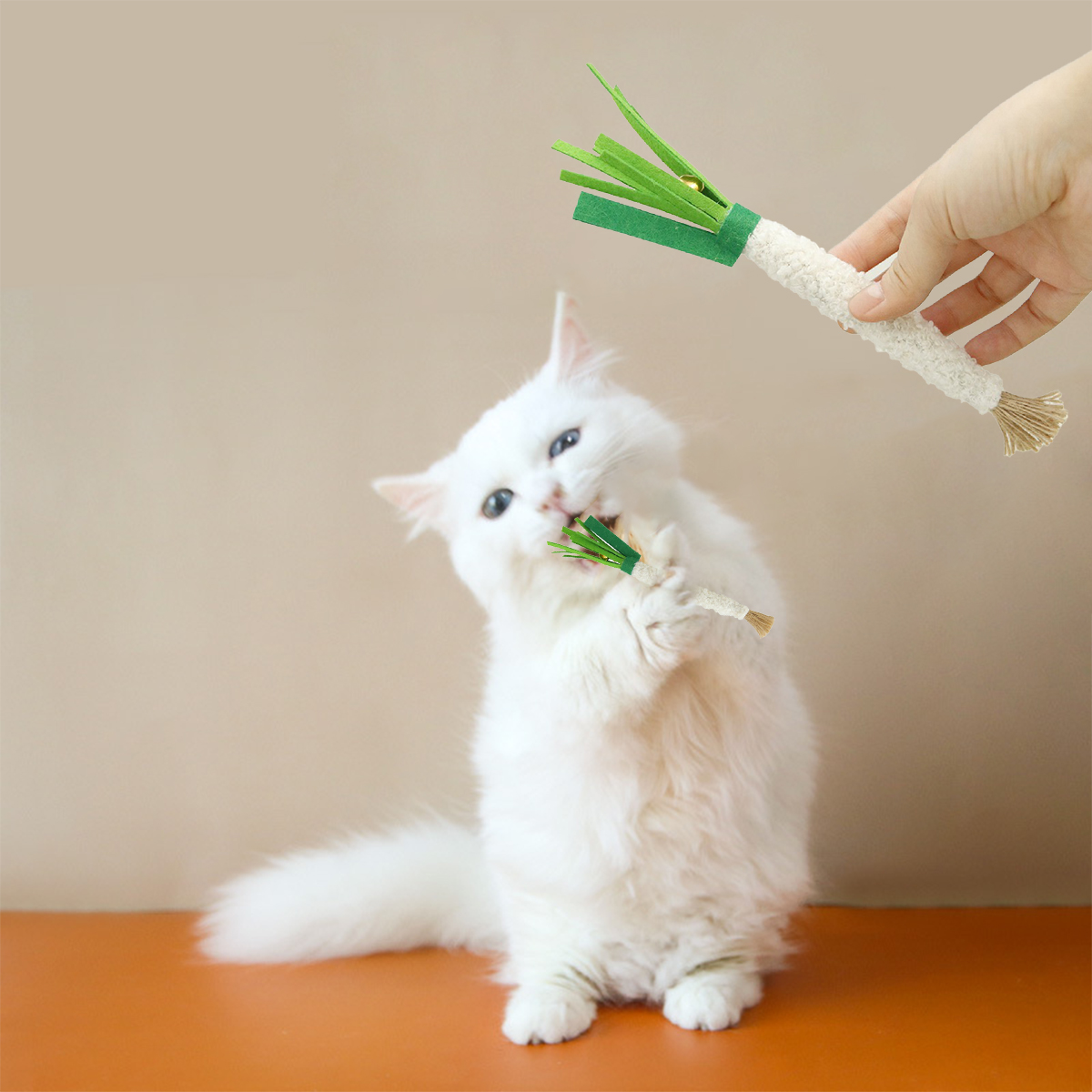 Unleash your cat’s natural instincts with the Eco-Friendly Silvervine Cat Chew Toy! This delightful, interactive toy is designed to keep your feline friend entertained and engaged for hours. Featuring a spring onion-inspired shape, vibrant green color, and a soft felted exterior, this toy offers a perfect blend of fun, comfort, and anxiety relief for your pet. Whether it’s a solo play session or an exciting bonding moment between you and your furry companion, this toy will quickly become their favorite go-to item for fun and relaxation.