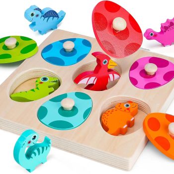Montessori Wooden Dinosaur Peg Puzzle Toys for Toddlers & Kids