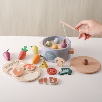 Montessori Wooden Carrot Harvest & Fishing Play Pot Toy for Kids