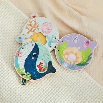 Wooden Baby Learning Book with Marine Animal Illustrations
