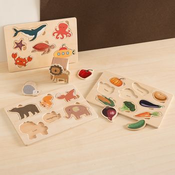 Montessori Wooden Animal & Nature Cognition Puzzle Board for Kids