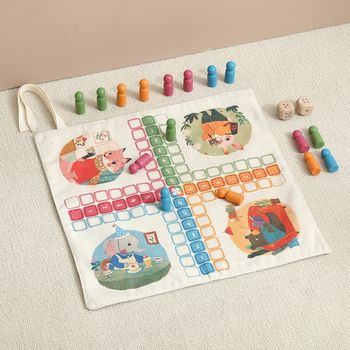 Kids Roll-Up Flying Chess & Puzzle Board Game Mat for Family Play