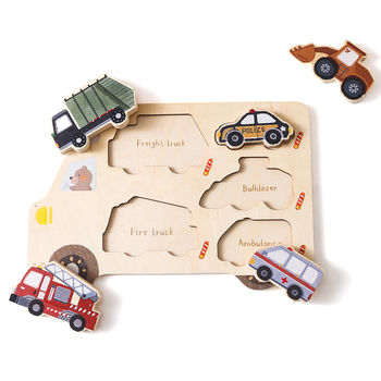 Montessori Wooden Car & Farm Shape Puzzle Board for Babies