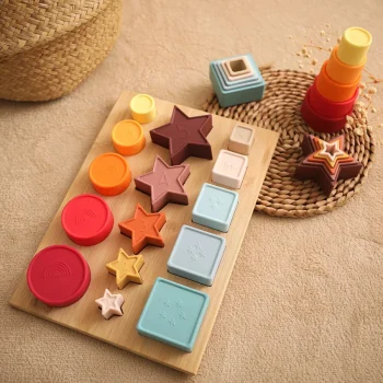 Montessori Shape Sorting Toy Set for Toddlers – Wooden & Silicone Stacking Blocks