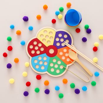 Wooden Montessori Rainbow Flower Board for Kids Fine Motor Skills