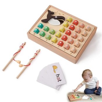 Wooden Montessori Magnetic Fishing Game – 26 Alphabet Cognitive Color Toy for Kids