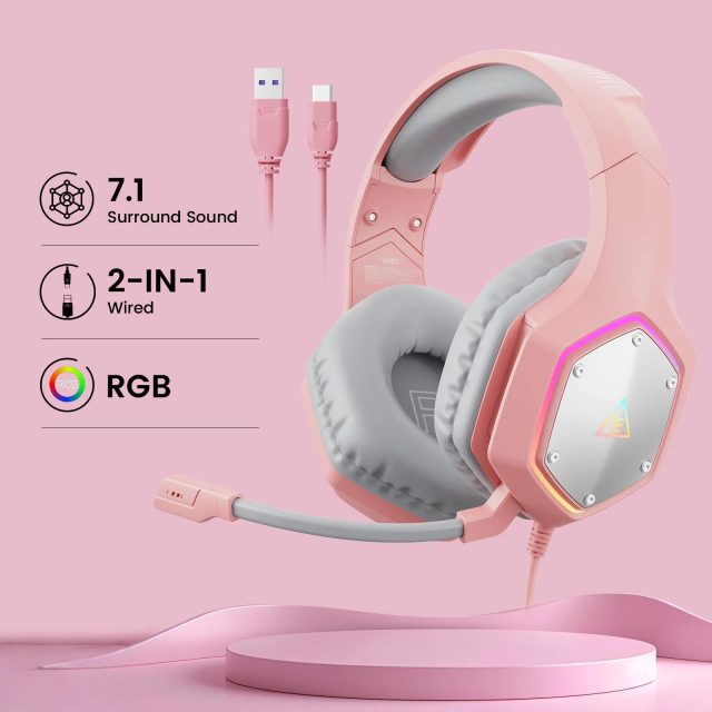 EKSA E1000 V2 RGB Gaming Headphones with Microphone 7.1 Surround Sound Wired Headset Gamer for PC/PS4/PS5/Switch/Phone