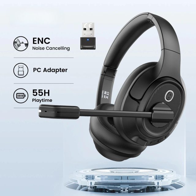 This wireless headset uses the latest Bluetooth 5.0 technology to ensure fast, stable connections up to 33 feet away. Its ENC noise-cancelling microphone reduces up to 98% of background noise, letting your voice come through clearly—even in bustling environments. With dual device connectivity, you can seamlessly switch between your computer and smartphone for calls, meetings, or music. The 40mm drivers deliver rich stereo sound, while the integrated USB dongle makes it easy to connect even to non-Bluetooth computers—no setup required.