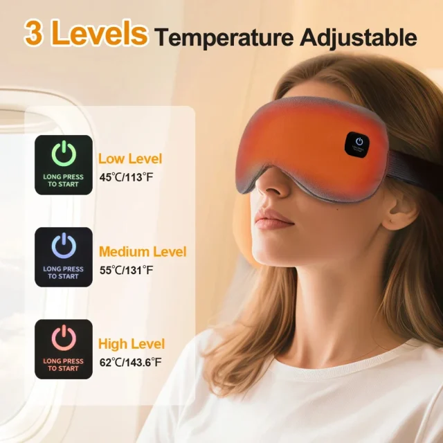 This mask features 3 levels of steady warm compress combined with 6 levels of vibration massage to melt away tension and boost circulation around the eyes. The even, constant temperature relieves dryness and fatigue, helping your eyes feel refreshed and energized after just a few minutes.