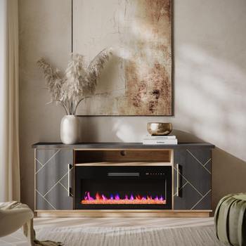 68″ Electric Fireplace TV Stand with Storage Drawers & Gold Trim – Fits TVs Up to 75″