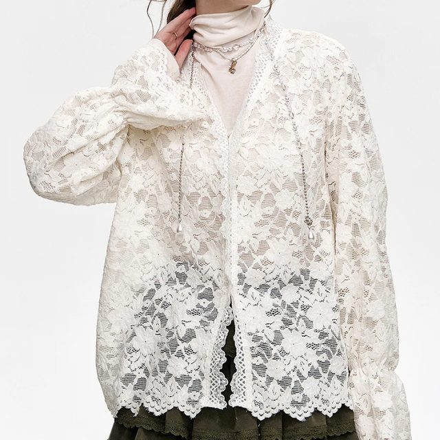 Step into refined femininity with this white lace layered chiffon shirt, designed to elevate your casual wardrobe with soft texture and delicate charm. Crafted from lightweight synthetic fibers, this semi-transparent top creates a graceful layered look that feels airy, comfortable, and chic. The smooth fabric drapes beautifully along the body while the lace detailing adds a touch of romance, making it a standout piece for any occasion.