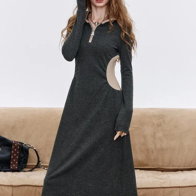 What truly sets this dress apart is its smart mix of comfort and office-ready style. The color block design adds visual interest without being too loud, while the hood gives it a relaxed, modern edge. The lace-up detail adds charm without making it overly casual, so you can easily move from work to weekend plans without changing your outfit.