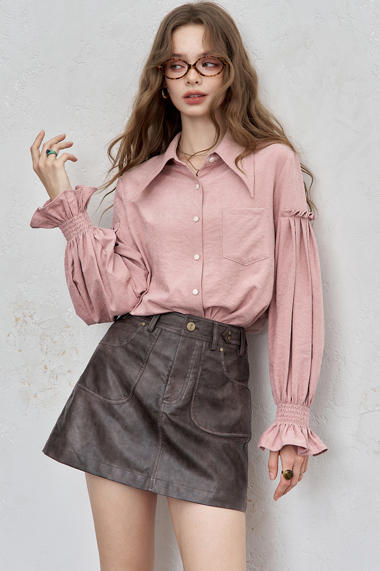 This chic, preppy-inspired shirt is the perfect blend of elegance and comfort for the colder months. Designed to keep you looking stylish while staying cozy, it’s an essential piece for every modern woman’s winter wardrobe. Featuring a solid color design with a unique wrinkled ruffle detail on the sleeves, this shirt adds a touch of sophistication to any outfit, making it ideal for both workdays and casual outings. With its turn-down collar and full sleeves, it’s the perfect balance of stylish and practical.