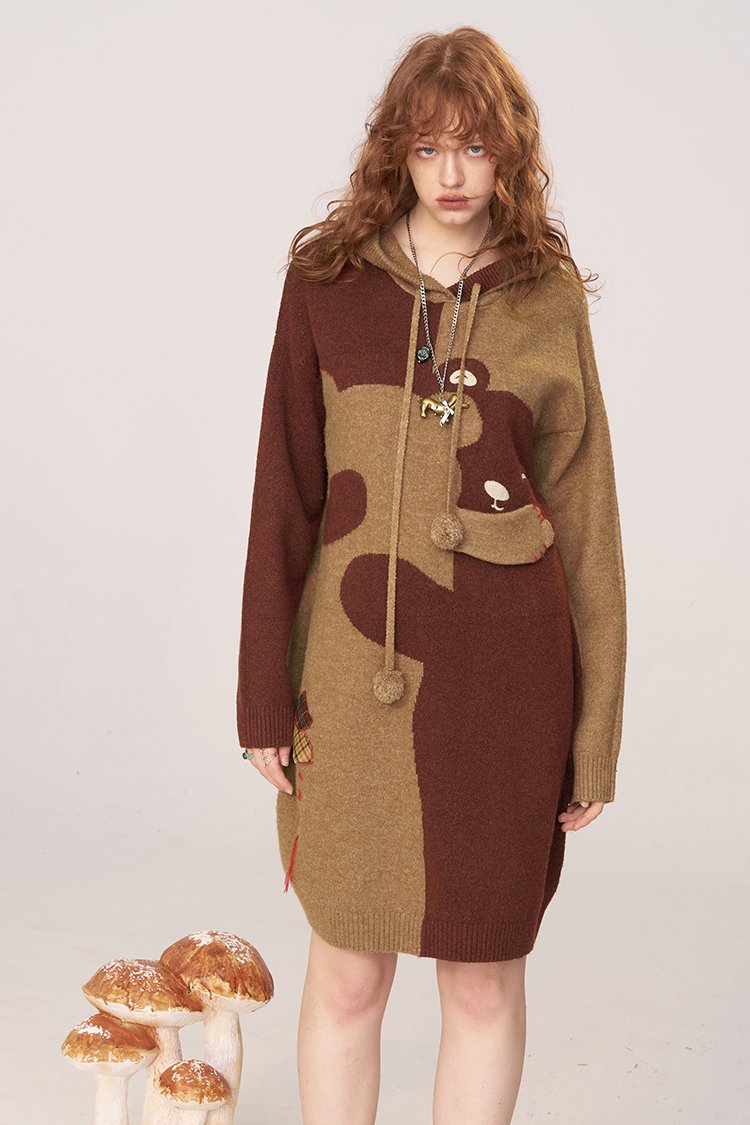 This dress combines warmth, charm, and sophistication in a way few winter pieces can. The unique cartoon-inspired bear design sets it apart from ordinary knitwear, giving you a look that stands out without trying too hard. It’s best used during autumn and winter when you want something cozy yet stylish—ideal for layering with tights, boots, or a favorite coat. Every detail, from the tatting-knit texture to the feminine shape, works together to create a piece you’ll reach for all season long.