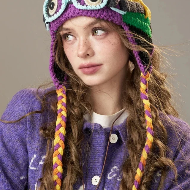Step into the chilly season with confidence and charm in this winter-ready, color-blocked crocheted ear-flap beanie. Designed for women who love cozy comfort with a fun twist, this hat blends soft nylon material with detailed tatting craftsmanship to create a warm, eye-catching winter accessory. The playful goggles-inspired decoration adds a unique touch that instantly sets this beanie apart from ordinary cold-weather wear. Lightweight yet insulating, it feels comfortable for long outdoor days and offers a snug fit that keeps the cold at bay.