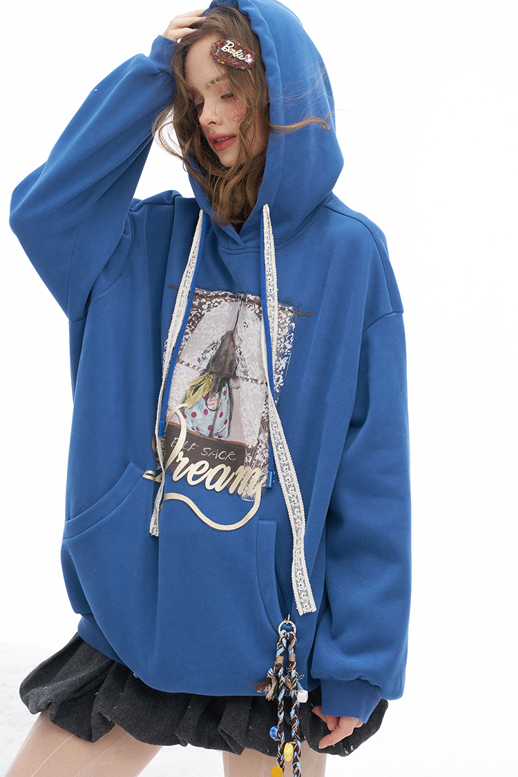 Winter Loose Y2K Graphic Hooded Pullover for Women
