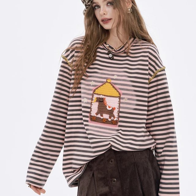 Embrace the cold weather in style with this 2025 Winter Y2K Casual Loose Preppy Stripe Graphic Round Neck T-Shirt. Designed to offer a comfortable yet fashionable fit, this top effortlessly blends casual ease with a chic, trendy vibe. Whether you’re headed to the office, meeting friends, or enjoying a weekend outing, this versatile t-shirt is a must-have for every modern woman’s wardrobe. Featuring a fun graphic print and an easy-to-wear loose silhouette, this tee will keep you cozy and stylish all season long.