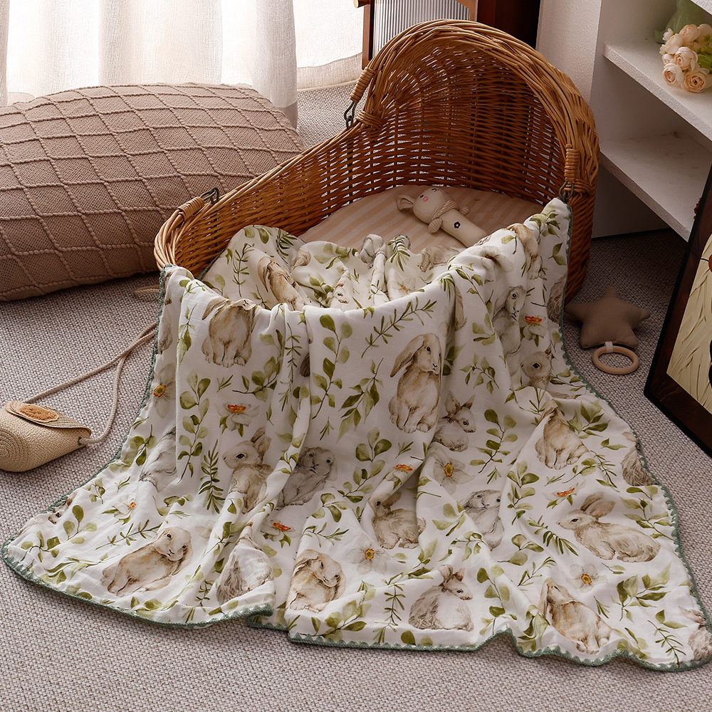 This blanket features a smart four-layer construction that balances warmth and airflow. It keeps babies comfortable without overheating, making it ideal for mild seasons and temperature-controlled rooms. The fabric feels naturally soft, flexible, and gentle, with no harsh chemicals involved. Suitable for babies and toddlers, it’s a practical essential you’ll reach for again and again. The unisex design and playful print make it a perfect everyday choice for any little one.