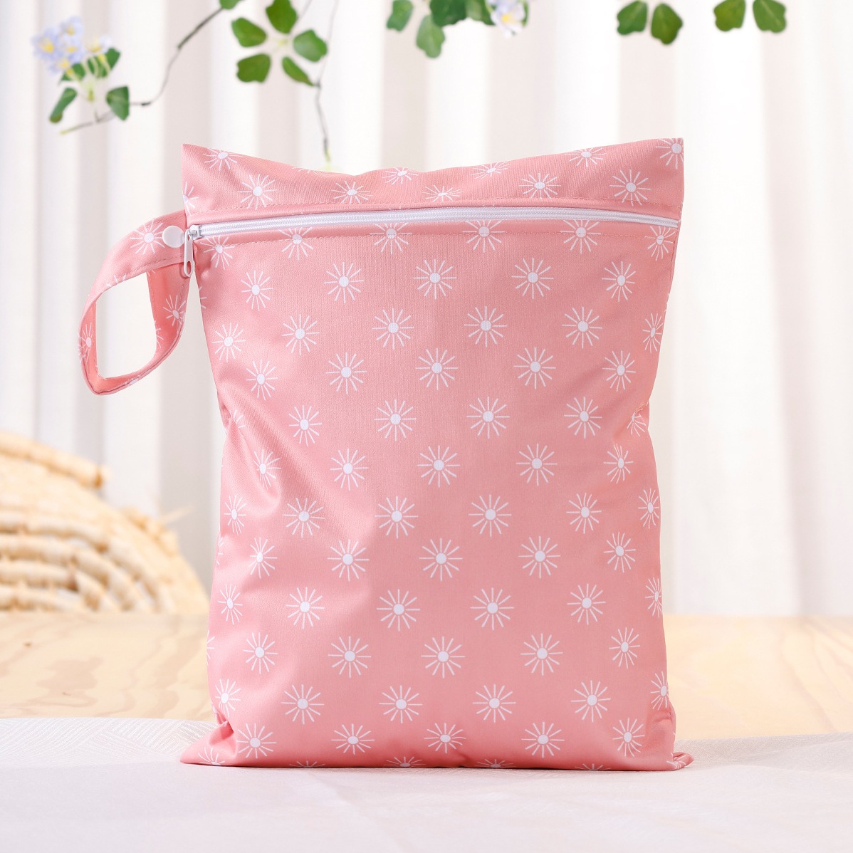 This wet/dry bag is crafted from durable polyester with a secure zipper closure to lock in moisture and odors. The waterproof interior offers reliable protection for everything from cloth diapers and swimwear to gym gear and baby essentials. Its printed design adds a touch of personality, making it a stylish yet practical choice for busy parents, caregivers, or anyone who needs clean, simple organization.