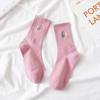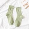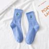 These socks are crafted to be both adorable and practical. They feature vibrant embroidered dinosaurs, a standard thickness suitable for everyday wear, and a stretchy knit that lets you move freely. Their solid color background makes the embroidered design pop, creating a sweet but stylish look perfect for casual outfits.