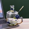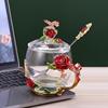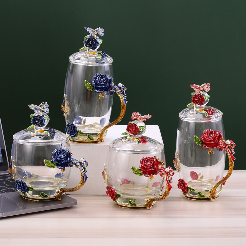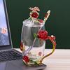 Elegant Enamel Flower Glass Mug with Lid
