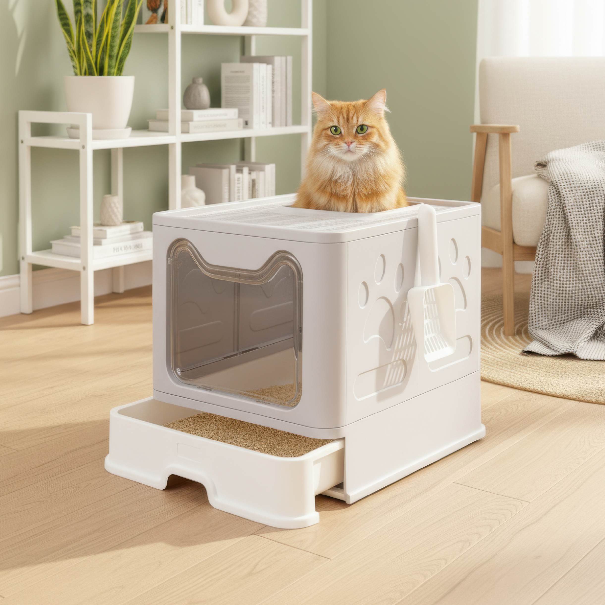 Cleaning up after your cat has never been easier. Simply lift the lid, scoop, and go—no spills, no stress. The smooth surfaces and detachable parts mean you can keep it spotless in minutes, so you can spend less time cleaning and more time cuddling your feline friend.