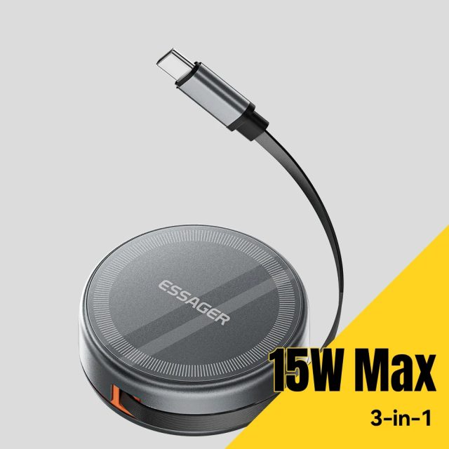 Meet the all-in-one wireless charging station designed to keep your essentials powered up with zero hassle. This smart 3-in-1 charger delivers up to 15W fast charging and includes a convenient retractable Type-C cable, making it the perfect companion for your phone, smartwatch, and wireless earbuds. With a compact build and a steady holder design, it keeps your nightstand, desk, or travel bag organized and clutter-free.