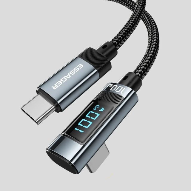 Experience the power of fast charging and efficient data transfer with this sleek USB Type-C to Type-C cable. Designed for convenience, performance, and durability, this high-speed cable is equipped with a unique 90° elbow design and an LED digital display for real-time charging status updates. Whether you’re charging your smartphone, tablet, or laptop, this cable is engineered to deliver a top-tier charging experience. With its robust construction and broad compatibility, it’s the perfect companion for all your USB-C devices.