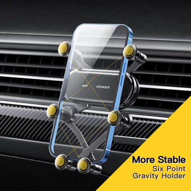 Don’t let your phone slide around or distract you while driving. This gravity car phone holder offers a unique and highly stable solution for keeping your phone in place. The six-point embrace mechanism holds your device securely, offering peace of mind whether you’re navigating city streets or cruising on highways. With its simple, one-handed operation, you can easily mount or remove your phone without losing focus on the road.