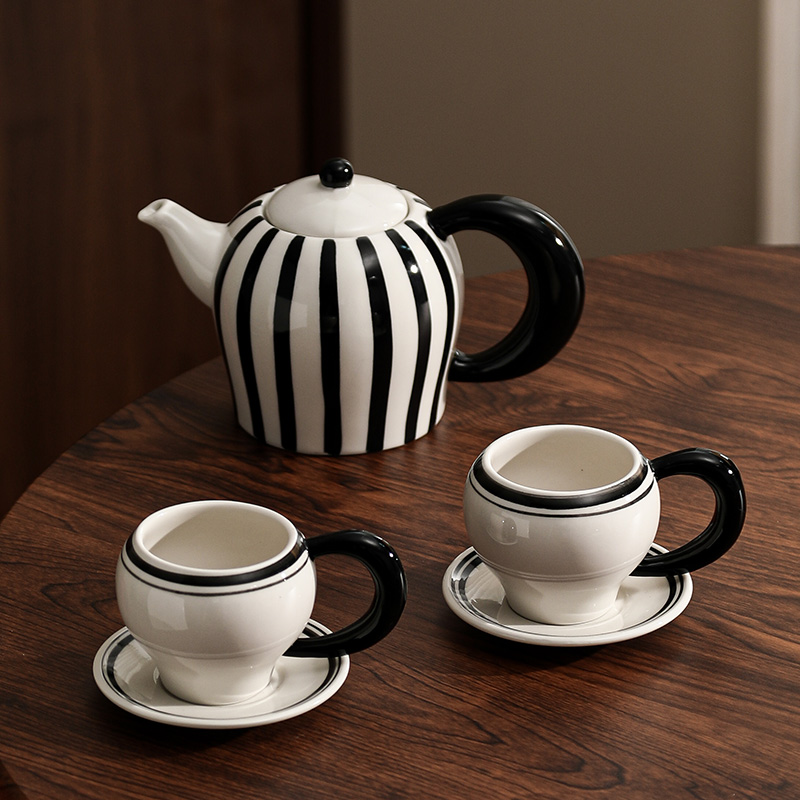 Elevate your tea time with the Luxury European Ceramic Tea Set, a stunning blend of classic artistry and modern style. Featuring a bold black and white striped pattern, this exquisite set instantly becomes the centerpiece of any table. Each piece is crafted from high-quality ceramic, offering a smooth, glossy finish that radiates sophistication and charm. Whether you’re hosting an elegant afternoon tea or enjoying a quiet moment at home, this set adds a refined touch to every sip.