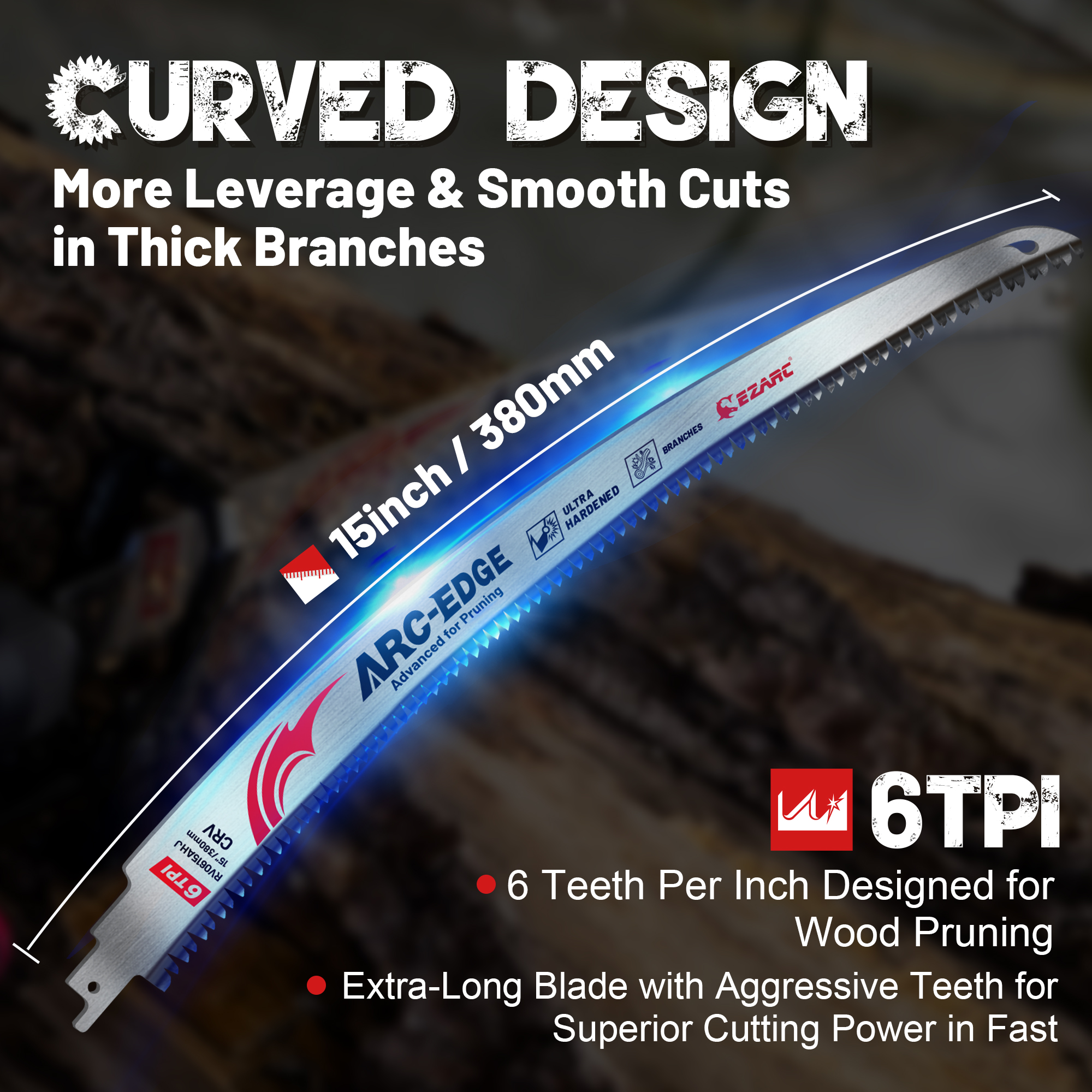 Our 15-inch reciprocating saw blades stand out because they combine durability, efficiency, and convenience. Whether you’re a professional arborist, landscaper, or a DIY woodworker, these blades are specially engineered for superior performance. The unique arc edge design and triple-ground teeth ensure smooth, precise cuts, allowing you to work with confidence, even on larger branches and limbs. The blades’ superior material and craftsmanship also contribute to their long lifespan, providing you with reliable tools that will last through multiple jobs.