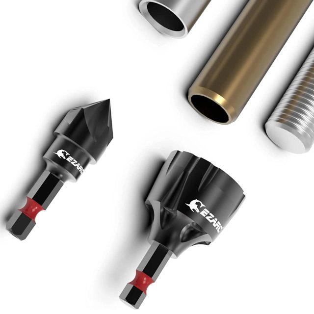 This set includes both an external deburring chamfer tool and an internal countersink drill bit, giving you the flexibility to work on a wide range of materials and projects. It fits sizes from 1/8″ to 3/4″ for external deburring and up to 5/8″ for internal chamfering. The quick-release shank fits most handheld and stationary drills, making setup fast and simple.