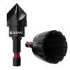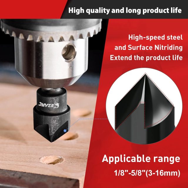 Each tool is crafted with top-quality materials for durability and performance. The internal countersink drill bit is made from high-speed steel with a black nitrided surface, ensuring superior strength and corrosion resistance. The external chamfer tool features a zinc alloy head with an electrophoretic finish and three sharp carbide blades that last longer and cut cleaner than standard steel alternatives. With a quick-release shank, these tools fit perfectly into all handheld and stationary drills for effortless operation.