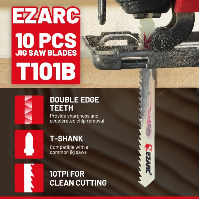 Each blade in this set is engineered with a 10 TPI (teeth per inch) configuration, ensuring accurate and clean cuts without splintering. Made from high-quality alloy steel, the blades maintain their sharpness and strength even after extended use. The universal T-shank design fits most popular jigsaw models, providing a firm grip and quick installation for both corded and cordless tools.