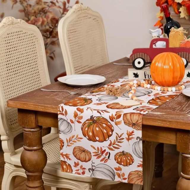 This runner shines brightest during the autumn season—from family dinners and Thanksgiving feasts to fall weddings and farmhouse-themed parties. Its rich orange hues and nature-inspired design create a warm and inviting atmosphere that complements pumpkins, candles, and centerpieces beautifully. Measuring generously to fit most standard tables, it transforms any space into a seasonal showcase.