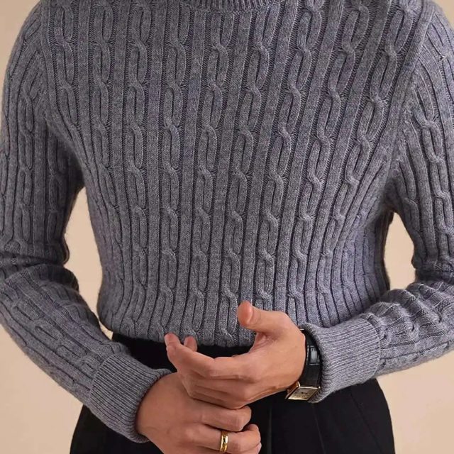 This sweater combines a traditional knitted texture with a modern turtleneck design, giving you both function and fashion in one piece. The high collar protects your neck from cold winds, while the computer-knitted construction ensures consistent quality and durability. The blend of wool, acrylic, and nylon provides warmth, softness, and long-lasting wear without feeling heavy.