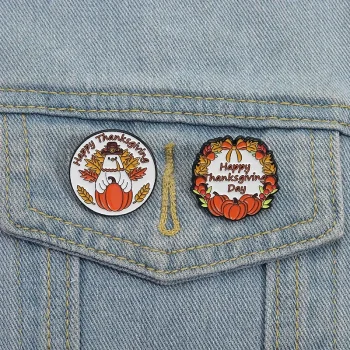 Thanksgiving Pumpkin Turkey Pins – Festive Alloy Badges for Clothes & Bags