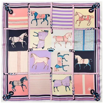 90cm Luxury Silk Horse Print Square Scarf for Women – Elegant Fashion Shawl