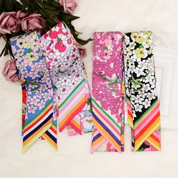 Floral Silk Skinny Scarf for Women – Luxury Multi-Use Fashion Accessory