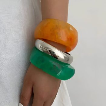 Boho Chunky Resin Bangles Set – Retro Y2K Statement Jewelry for Women