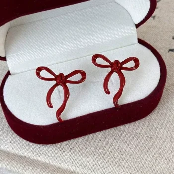 Wine Red Bow Knot Stud Earrings for Women – Elegant Party Jewelry