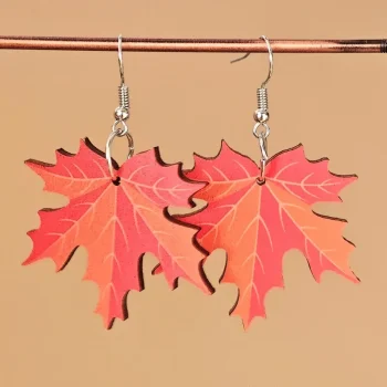 Maple Leaf Dangle Earrings – Red & Orange Wooden Drop Earrings with Silver Hooks