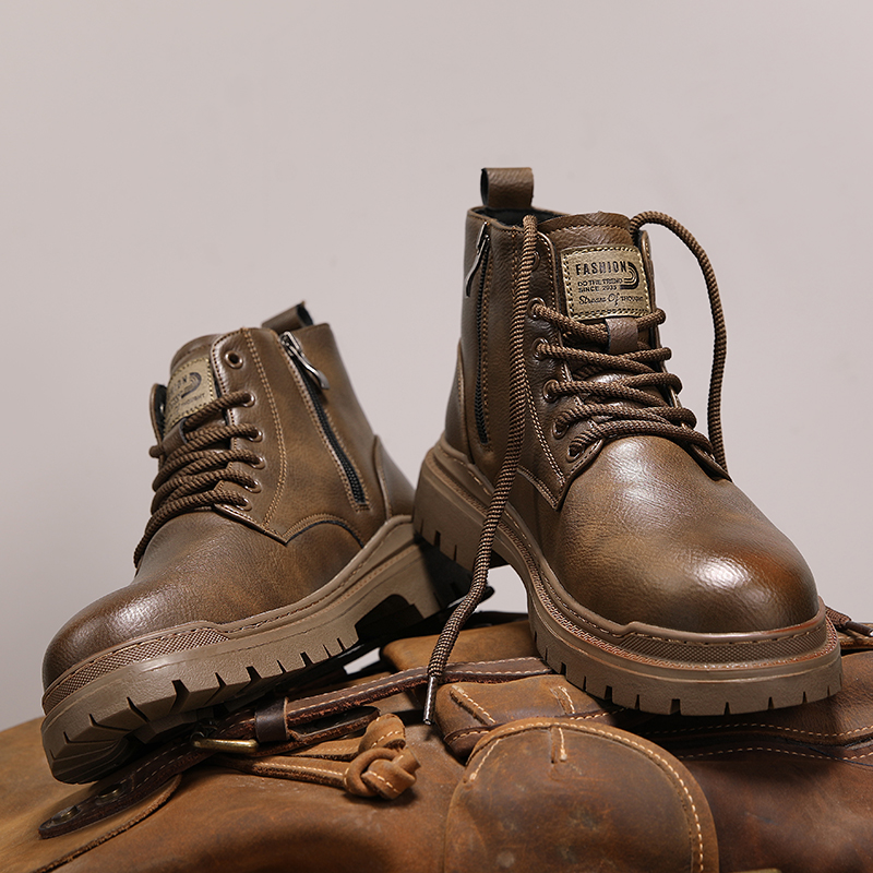 Step into the colder seasons with confidence and comfort in these men’s casual leather motorcycle ankle boots. Designed for autumn and winter wear, these high-top boots blend a clean British-inspired look with the practical warmth you need for chilly days. The round-toe design, lace-up closure, and smooth microfiber upper create a stylish yet relaxed look that pairs effortlessly with jeans, work pants, or casual outfits.