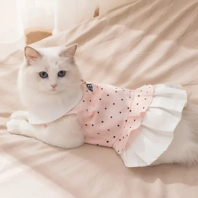 Let your furry friend steal the spotlight with this Princess Lace Dog Dress. Designed with exquisite lace details and a delightful dot print, this dress combines charm and comfort in one irresistible outfit. Whether it’s for a casual stroll, a special celebration, or a pet wedding, your pup or kitty will look absolutely adorable and fashionable in this lightweight and breathable dress.