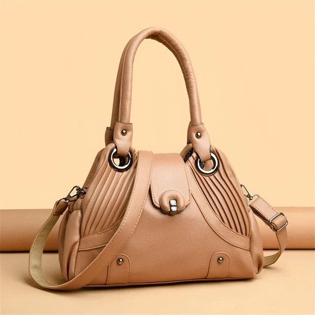 Turn heads wherever you go with this Luxury Soft Leather Tote Bag — a perfect blend of sophistication and practicality. Designed for the modern woman, this elegant handbag elevates your look whether you’re at work, running errands, or enjoying a night out. Its sleek pleated pattern and delicate rivet accents bring a touch of luxury to your everyday style.