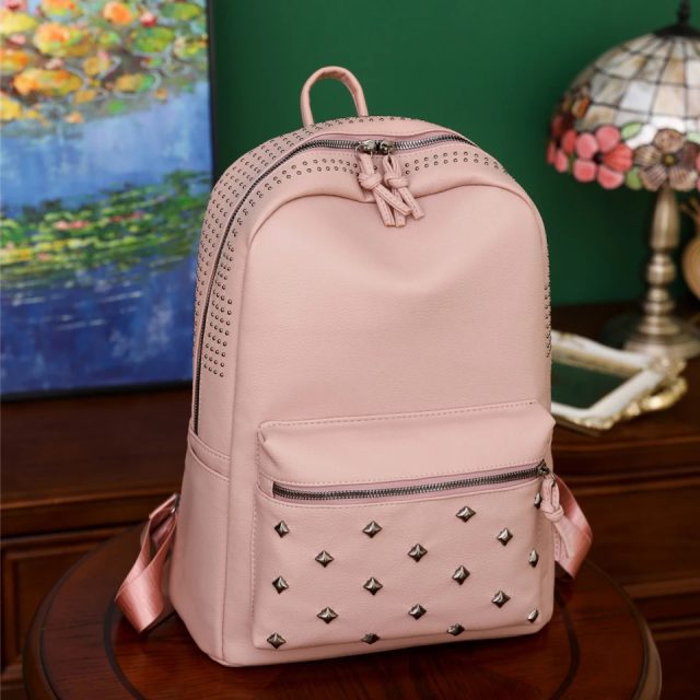 Women’s Soft PU Leather Rivet Backpack Large Fashion Daypack