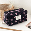 Crafted from premium polyester, it’s lightweight, durable, and easy to clean — perfect for daily use. The soft, flexible fabric allows you to fit your essentials comfortably, while the secure zipper keeps everything safe and in place. The cute bow print design adds a charming feminine touch, making it a must-have accessory for every handbag or vanity.
