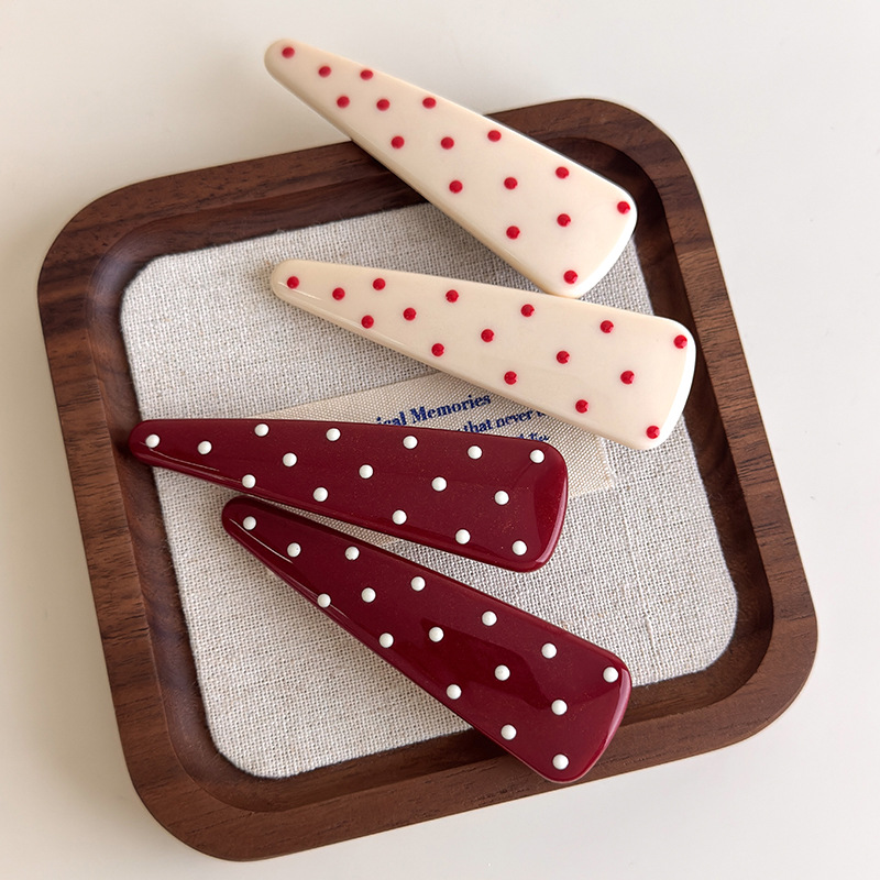 What truly sets our Triangle Polka Dots Hair Clips apart is their unique combination of playful design and practical usage. Unlike ordinary hair accessories, these clips enhance your hairstyle while also serving as a fun expression of your personality. Crafted without harmful chemicals, they ensure a safe and comfortable experience for your hair, giving you peace of mind as you look and feel fabulous.