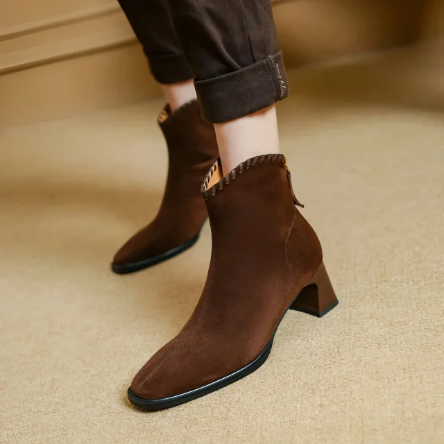These chic Winter Ankle Boots offer the perfect blend of retro Western charm and modern sophistication. Crafted with high-quality cow suede, they promise both warmth and durability, making them a must-have for your winter wardrobe. Whether you’re pairing them with jeans, skirts, or dresses, these boots elevate your look while providing all-day comfort. Designed with a sleek square toe and mid-height square heels, they offer the perfect combination of support and style, ensuring you feel as great as you look.